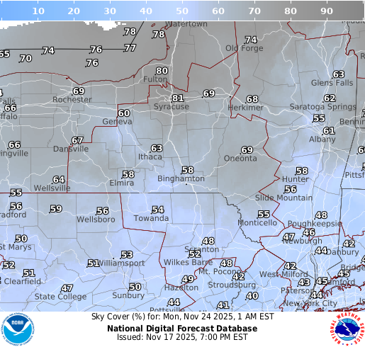 Based on NOAA Regional Weather ForecastLast update started Mon Nov 17 19:15:01 2025 ended Mon Nov 17 19:19:10 2025