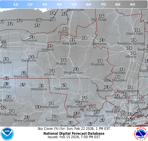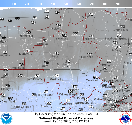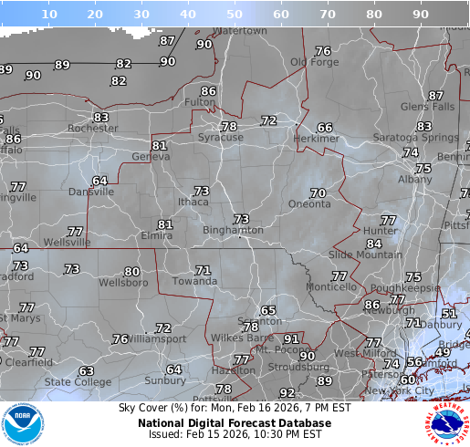Based on NOAA Regional Weather ForecastLast update started Sun Feb 15 22:15:01 2026 ended Sun Feb 15 22:19:00 2026