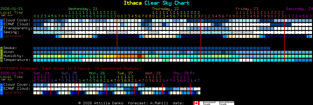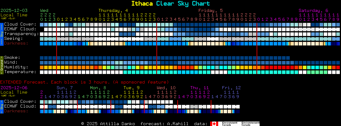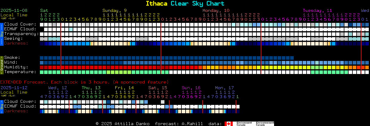 For comparison, here is Ithaca Clear Sky Clock, it uses different data source